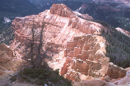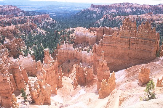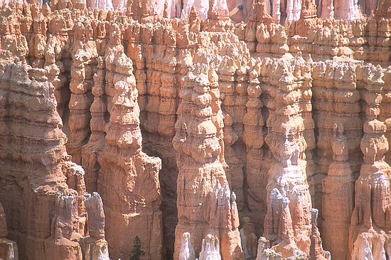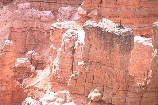 Day 8 The visit to Bryce Canyon in the morning of the eighth day was another example of the terrific job the National Park Service is doing. Some people think that the "hoodoos" of Bryce Canyon are the result of a natural erosion process. Only fools can believe such a nonsense. Nature just ain't so creative. There was certainly some help from Hollywood in producing this fairy-tale set. I just can't remember the movie it was built for.