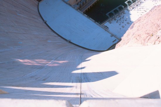 We stayed over night in Boulder City and returned to the dam the other morning. Below is a view from the dam's rim down to the power station. It's quite a drop! I would not recommend bungee jumping, but it would definitely be a great venue for abseiling.