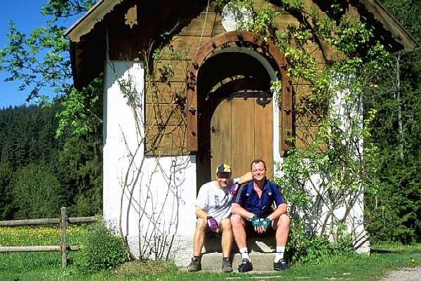 My good friend Markus and me sitting in front of one of the many small chapels, which can be found everywhere in Bavaria.