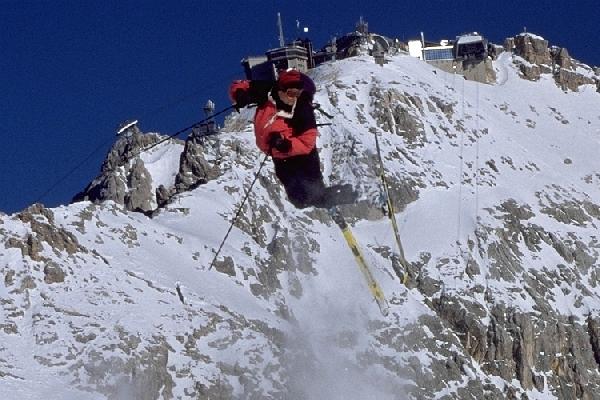 In the air in front of the Zugspitze summit.
