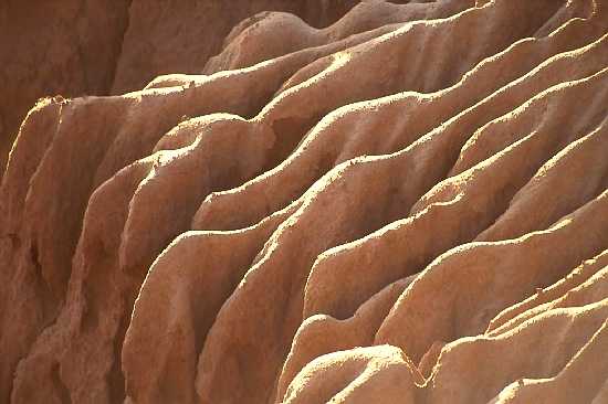 The cliffs consist of soft sandstone and erode easily. The erosion patterns are spectacular, in particular when the sun is low and dark shadows alternate with the rich golden color of the stone. Thanks to the great weather of San Diego that the cliffs still exist. Every heavy rain changes the appearance of the cliff's texture or cause part of the cliffs to collapse. Houses, which are built to close to the edge, are in great danger.