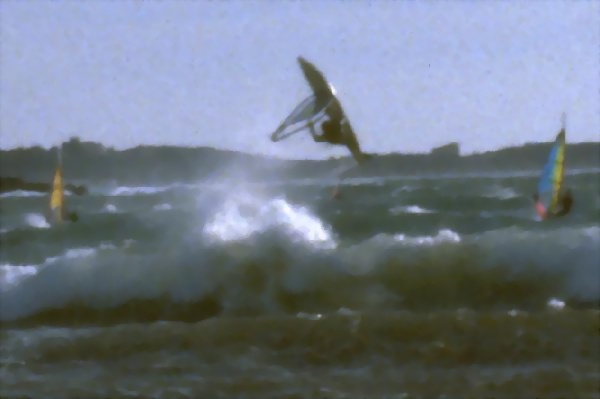 Big day in Sanary / Six Fours! Mistral is blowing with about 45 mph. My sail is only 3.2 square meters large. I guess that the shot is about 10 years old.