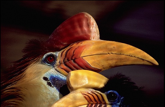 This is a Sulawesi Hornbill. This bird builds a nest in a hollow tree, then the male will "mud in" the female. Only until the eggs are laid, hatched and fledged will the female and young emerge. Don't ask me what the horn above the beak is for.