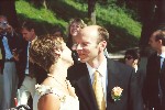 After they had bravely endured serious suffering we all danced waltz on a parking lot and opened the first bottles of champagne. Obviously delighted, bridegroom and bride posed in front of their car before we went to another place, having more champagne and beer.