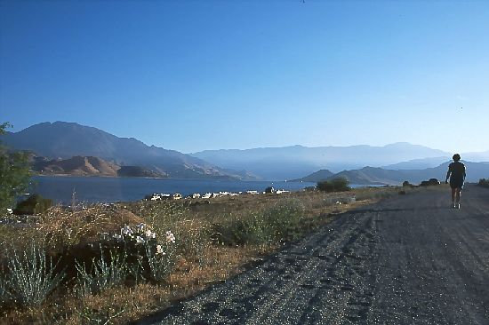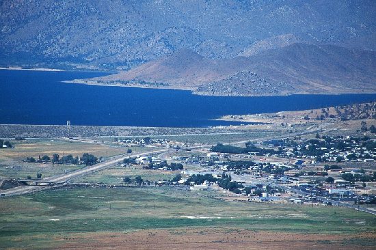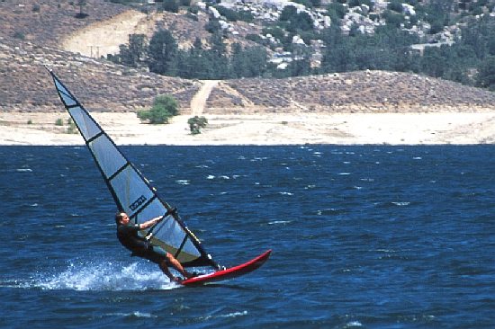 Below is Lake Isabella. The town next to it is separated by a dam from the lake and has the same name: Lake Isabella. The lake is the place with the best wind in Southern California and that's why I was driving there: for windsurfing! The wind is thermal, 35ºC hot, and starts around noon. So there is plenty of time to cruise around in the morning.