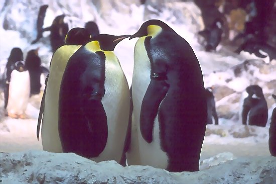Last but not least, penguins. They are on display in a huge freezer with real snow. Their exhibit seems to be hermetically sealed and is illuminated with fluorescent lamps. I feel that these poor birds never see the sun. Seeing them locked away is sad compared to watching them in the wild.