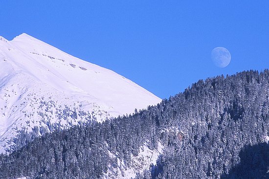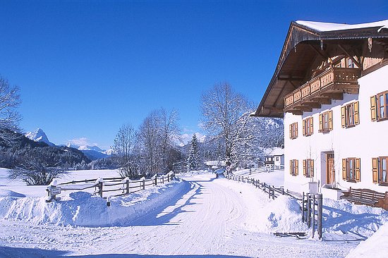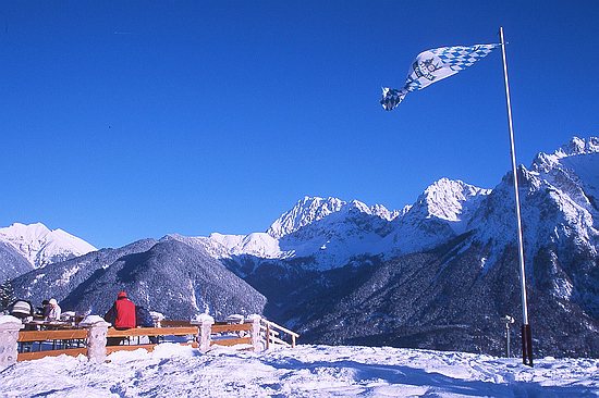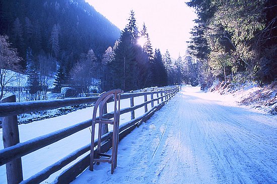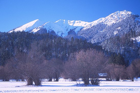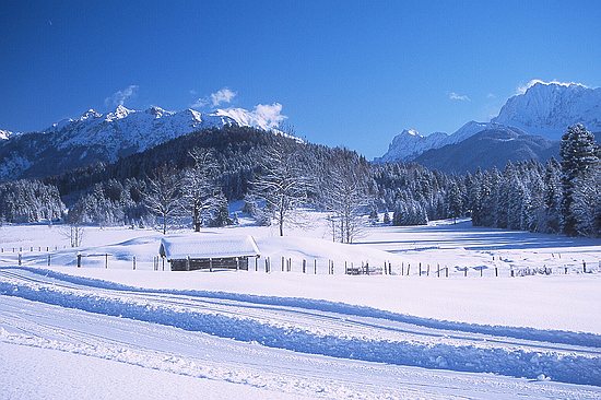 The dream of white Christmas came true when I visited my hometown Garmisch-Partenkirchen in December 2001. I arrived at 5 PM on Christmas eve, the temperature was about -10ºC with snow on the ground. During the following days I was skiing, visiting friends, and walking with my mom. The following photographs show the beauty of Garmisch's vicinity. The first three pictures were taken near the Gerold lake. The mountains in the background belong to the Karwendel, a mountain ridge East of Garmisch.