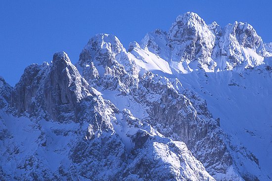 The Karwendelspitzen and the Viererspitz (Four-er peak). Try to find the four in the rock!