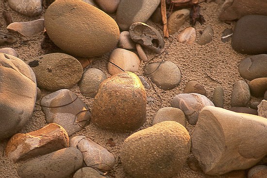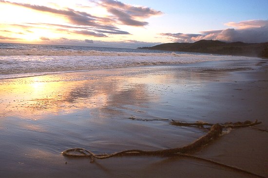 The rocks at the beach were shimmering golden as the sun went down, ...