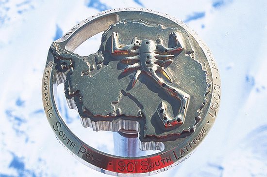 South Pole marker from 2001. | |||||||