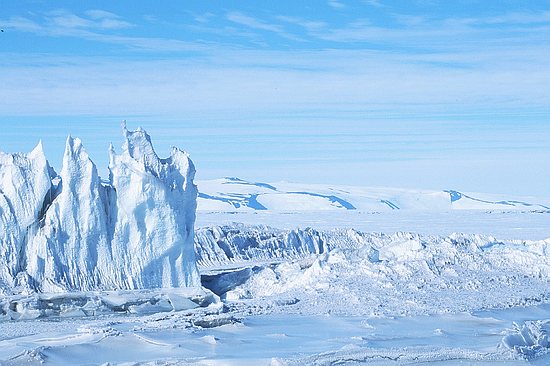 Pressure ridge in front of Scott Base with White Island in the background. | |||||||