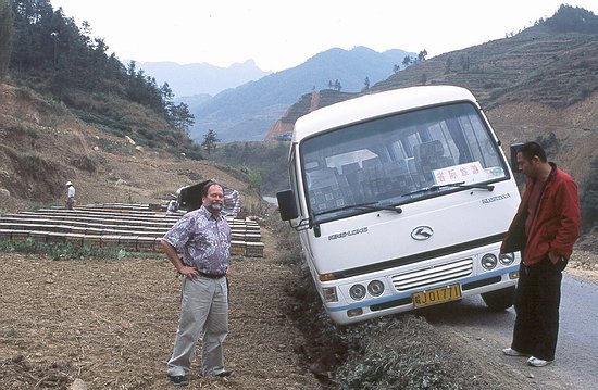After the conference, I went with 9 colleagues on a bus tour through Chinese backcountry. We had planned to visit the Yellow Mountains and two ancient villages. The start of the tour turned out to be quite exciting. Our chauffeur was driving as if he were alone on the street. This strategy worked for about two hours until the road became narrow. When we were heading toward an oncoming bus, our driver didn't slow down but rather tried to stay as far right as possible. Well, he managed to avoid the other bus, but unfortunately the shoulder of the street gave way. It was a miracle that we didn't overturn. If we had, we would have crashed into a bee farm.