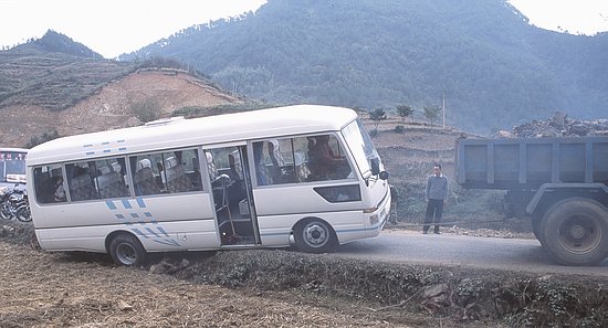 It took about half an hour until our driver had forgotten the accident. One hour later, he was passing a car shortly before a bridge. I will never forget the view of the bridge's pillar flying toward us. I still don't understand how he managed to get around it. In fact, sitting in the bus and watching all kinds of obstacles almost hitting us was so nerve-wracking that our group decided to fly rather than drive back to Shanghai. It was a good decision, and I can highly recommend the fine service of China Eastern Airlines.