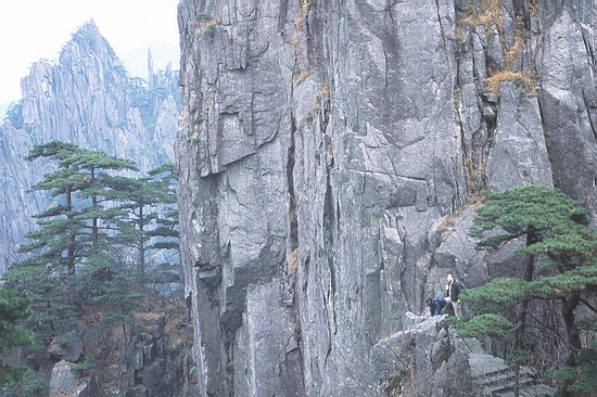 Below are a couple more impressions of the scenery. I believe that the mountains had a great influence on Chinese art. At least many scrolls that I have seen were decorated with landscapes resembling the pine covered summits of Mount Huangshan.