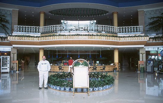 While visiting the ancient villages, we stayed two nights in the Huangshan Golf Hotel. The luxurious hotel was completely out of place, considering its location. My room was one of the largest I ever had in a hotel. It was even tastefully decorated and there was really a golf course when I looked out of the window. But there were also some odd things: for example, a label near the window told me that I was not allowed to open the curtains during night because of "photokinetic insects". Getting a drink at the bar was not possible. The only alcoholic beverage available was beer. A bit strange for a 5-star hotel.