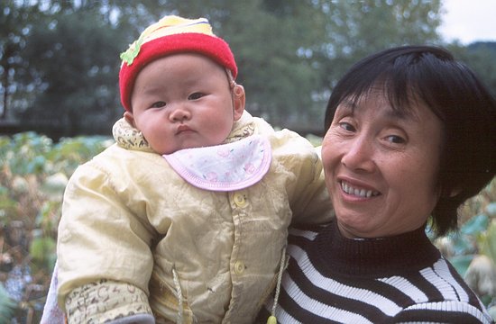 For some reasons, Chinese parents seem to believe that babies have to be wrapped in at least 5 layers of garment. I was sometimes wondering how many kids die from overheating. The Chinese government promotes a one-child per family policy, and infants are therefore often treated like little kings. The guy below even wears the color that was once reserved for the Chinese emperor.