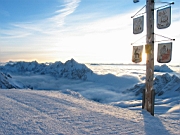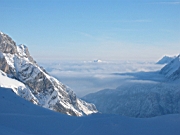 | The last block of pictures was taken at the Zugspize skiing area. Garmisch and the "Inntal" were hidden below a thick layer of fog, but the weather at altitude was gorgeous and the powder was still in perfect shape. Den letzte Bilderblock habe ich im Skigebiet unterhalb der Zugspitze aufgenommen. Garmisch und das Inntal waren unter einer dicken Nebelschicht verborgen. Das Wetter in der Höhe war großartig und der Tiefschnee war perfekt. | |||||||||||||||||