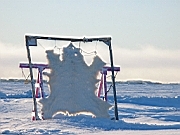 | At the first of March 2004, I traveled to Barrow, Alaska, to service and calibrate one of NSF's UV spectroradiometers. Barrow is the northern-most town of the United States. Most residents are Inupiats, a distinct ethnic group of the Inuit Eskimo peoples. Hunting bowhead whales is still a vital part of Inupiat lifestyle and the influence of Eskimo culture can be found everywhere. I stayed 10 days in Barrow. In addition to working long hours, I was enjoying a winter storm, spectacular sun sets, caribou, a trip to the northern-most point of Alaska (Point Barrow), and foot prints of polar bears. I saw unfortunately only hints of Northern Lights and not the spectacular display that I witnessed in 1999 during my first visit to Barrow. | ||||||||||||