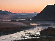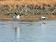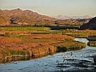 | I've spent two days over Thanksgiving with friends at Taylor Lake. The little lake (in facts, it's more a slough) is located about 25 miles north of Yuma, and 180 miles east of San Diego. It is attached to the Colorado River via a small channel and is also a bird sanctuary. There were pelicans, cormorants, kingfishers (at least I think), ducks, and an equal number of duck hunters. Sunsets and sunrises were spectacular, and the full moon made the scenery perfect. I was kayaking on the Colorado River on the first day and hiking on the second. In between, I ate turkey, recovered from eating turkey, listened to the howls of coyotes, and chatted at the campfire. Some impressions are below. Don't miss the links to the large-size panoramas!