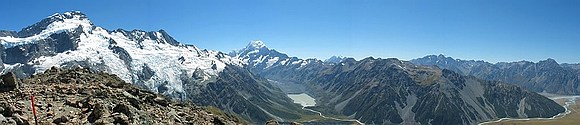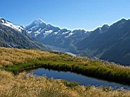 | After returning from Antarctica, I stayed for a few days in New Zealand, visited friends, and went hiking. On the first day, I drove from Christchurch to the Alpine Village at the foot of Mount Cook, New Zealand's highest mountain. The weather was perfect and the scenery along the way stunning. I stayed at the famous Hermitage Hotel during the first night. | ||||||||||||