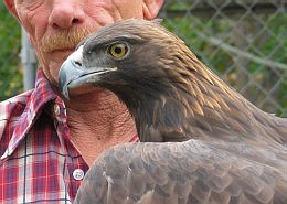| I visited Sky Hunters on one weekend in October with friends of the San Diego Hiking Club. The organization takes care of injured raptors and educates the public about Birds of Prey. They have a nice facility in the mountains east of San Diego, where several birds, which cannot be released into the wild, can be met. It was the first time that I saw Golden and Bald Eagles, and I was most impressed by their size and beauty. Below are a few shots of these amazing birds. | ||||||||