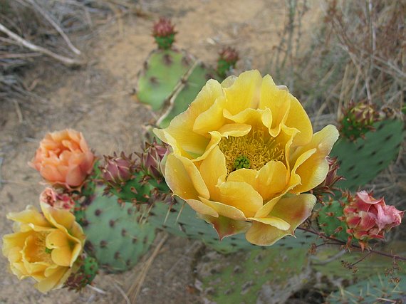 | There wasn't much going on in June except work. One highlight was a visit to the Annex of the Torrey Pines State Reserve. This is a little known part of the reserve, which is well hidden within the suburbs of Del Mar. In fact, I tried finding the park twice before, but failed. 2006 was a rather try year and the flowers were not as abundant as in 2004. But I found a Prickly Pear in full bloom, which was just beautiful.