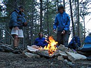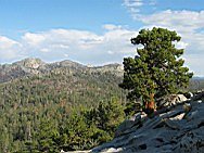 | I went on a backpack in August with friends of the San Diego Hiking Club. It was the first backpack in my life! Our destination was Albanita Meadow in the southern part of the Sierras, about 10 miles north of Kennedy Meadows. It was a three-day trip and we had to haul in camping stuff and food. Luckily there was a spring, so we didn't have to bring water. After having settled in we hiked to the top of four mountains: a little unnamed peak, Jackass, Crag Peak and Smith Mountain. On the way down from Crag we had to hike through an area that was devastated by a wildfire just one month earlier. In fact, it was still burning. My friend Tony saw some smoke in the distance, we decided to check it out, and sure enough, we found a few trees that were still smoldering. | |||||||||