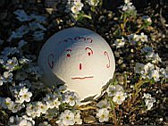 | 22-March 2008: EasterI also went to the desert over Easter. On Saturday, I hiked with a friend from Ranchita to the top of San Ysidro Mountain, and stayed in Culp Valley over night. Most Easter eggs were cheerful but some were a bit frightened to get eaten (and I can't blame them). Flowers were everywhere. | |||||||||