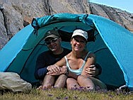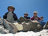 | 3-5 July 2009: Arrow Peak The first backpacking trip started close to the little village of Aberdeen, located in Owens Valley, between Independence and Big Pine. On the first day, I hiked with Annie and two of her friends to Taboose Pass. With over 40 pounds on by back, it was a strenuous 6000 feet climb from the trailhead! We continued to Bench Lake where we set up camp. I got up early the next day to watch the sunrise. Arrow Peak started to glow in red and was reflected in Bench Lake. It was spectacular! After a hearty breakfast we started hiking through untouched forests and along streams with turquoise water. We passed a beautiful lake surrounded by a lush mountain meadow. The last part of the hike up Arrow Peak was a steep ascent over scree. And then I stood on the summit, 12958 feet over sea level! It was the highest peak I've ever climbed! After enjoying the views for almost one hour with Annie, we retraced our steps and were back at camp shortly before sunset. We celebrated the day with a glass of wine and made sure that the Mosquitos didn't get a sip. | ||||||||||||