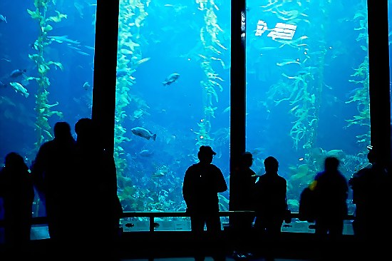 In the morning of Day 12, we reached Highway One for the first time. We left the famous road after a few miles to visit the Monterey Bay Aquarium, the largest marine sanctuary in the U.S. Most impressive is the huge Kelp Forest Tank featuring kelp (the basis of most marine life in Monterey Bay); sardines (the basis of Monterey's economy during the last century before the sardines finally disappeared because of over-fishing, as some say); and other colorful fish (the basis of today's tourist industry).