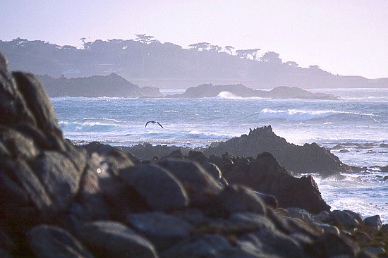 We headed to our next destination, the "17-mile drive", leading from Monterey Bay in the north to Pepples Beach and Carmel in the south. On the right side of the road was the most picturesque ocean scenery, and on the left side of the road were four golf courses, one following the next. As I don't play golf, I focus on the right side. The brown tube in the foreground of the picture below was once a part of a kelp plant. It's filled with pressurized air that provides buoyancy. When puncturing the tube, the air will puff out with a whistle.