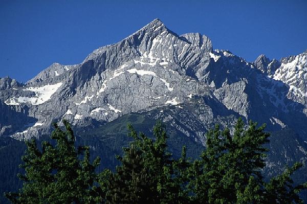 The landmark of Garmisch-Partenkirchen, the Alpspitze during summer.
