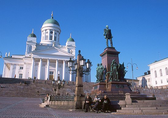 The next picture shows the landmark of Helsinki, the Senate Place with the Dom in the background. The university is just around the corner and many students enjoyed the sunny weather.