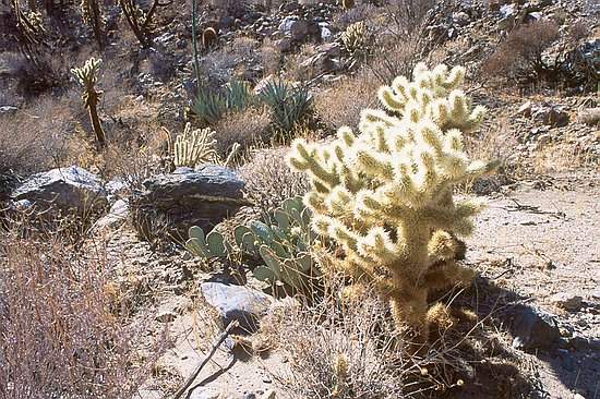 The space between the rocks was filled with cacti, agave, and small bushes.