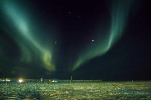 | In November 1999, I serviced with a colleague the NSF network instrument in Barrow, Alaska, the northern most point of the U.S. At the last day we had the luck of observing a great Aurora. The picutre to the left shows one example. More pictures are here.