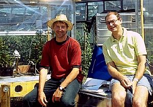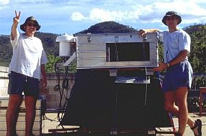 | Between December 1995 and January 1996, I was with the Mobile IFU Spectroradiometer in Townsville. The city is located at the coast of Queensland, the north-easterly region of Australia. The picture shows me with my colleague Aurel Moise from the James Cook University, where the campaign took place. Our goal was to quantify the prevailing UV levels in the tropics of Australia. We found that during summer months, the average daily dose of sunburning UV radiation is about 70% higher in Townsville than in Garmisch-Partenkirchen. This partly explains why the skin cancer rates in Australia are the highest in the world. It is therefore a good idea to always wear a hat, as we do on the photo.