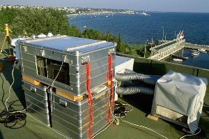 | In 1997, the largest European intercomparison campaign of UV spectroradiometers ever organized was held in Nea Michaniona. The small city is located in the northern part of Greece, close to Thessaloniki. A total of 19 groups participated. I took part with Mobile IFU Spectroradiometer. The photo shows the set up next to the sea.