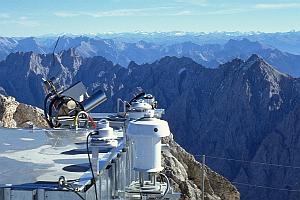 | The third UV spectroradiometer developed at IFU is located on top of Germany's highest mountain, the Zugspitze. The landmark is only about 8 kilometers away from the institute. The close neighborhood of two high-quality instruments in different altitudes is unique in the world and was the stimulus of several research projects. For example, by comparing measurements from the instrument on top of Zugspitze with results from its twin in the valley the change of UV radiation with altitude was investigated. The influence of clouds and smog below the summit on UV levels was analyzed in a similar fashion. I was involved both the deployment and support of the "Zugspitze spectroradiometer".
