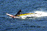 Lake Isabella is the fresh water lake located in the foothills east of Bakersfield and has the best wind in Southern California. It even blows more than at Cabrillo Beach. However, it's a five hour drive from San Diego and I pulled myself together for going up there only once so far. But it was worth it! I have spent three awesome days over Memorial Day weekend at the lake, sailing with a 5.5 all the time (in fact, I could have used a 5.0). People told me that it is not uncommon to sail a 4.0.