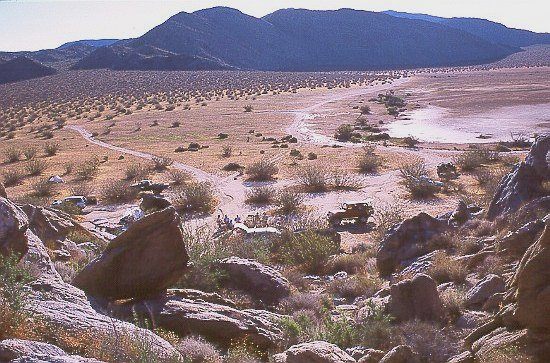 After our save return (with no Mountain Lion encounter), we drove to Blair Valley, which is on the western side of the Anza Borrego desert. Below is the place where we have spent the night. Except of some scorpions, nobody was around us. The flat terrain to the right is a dried up lake in the middle of the desert.