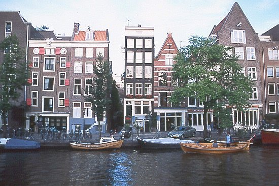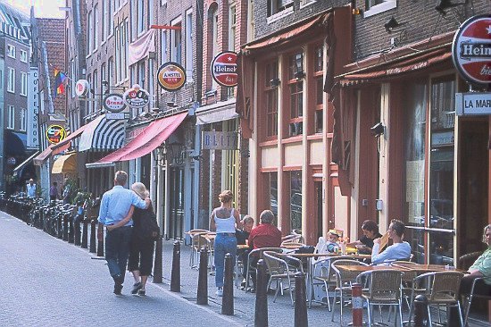 Amsterdam is a fabulous city with a large medieval center, which survived the last centuries undamaged. Houses are built of bricks and surrounded by water, the "Krachten". It's just the complete opposite of a U.S city. Streets are small and laid out in circles around the center rather than on a perpendicular grid. There is no spatial segregation between living, working, shopping, and spending leisure time. Typical houses have shops and pubs in the first floor, and flats and offices in the upper floors. Trying to get around by car is foolish as parking space does virtually not exist. Public transportation is most efficient and there is at least one tram or bus station less than two blocks away. The most popular means of transport, however, is the bicycle. And getting around by boat is also no problem. Pubs are everywhere and in some, called coffeeshops, selling and buying soft drugs is tolerated. In fact, there is even a hash and marihuana museum in town. Dutch people have traditional a liberal attitude, and this might also explain their drugs policy.