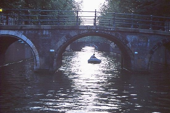 The tour through Amsterdam concludes with an impression that only can be gained here or eventually in Venice: a lonely boat steering through a maze of more than 100 channels and more than 1000 bridges.