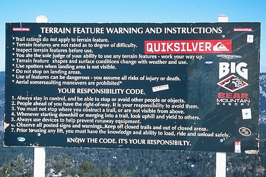 Skiing in America is a bit different from skiing in Europe. First, there are regulations everywhere, thanks to U.S. liability laws. Those assume that it's the fault of the ski resort if a skier falls and breaks his leg. Rules on how to appropriately behave can be found on lift tickets, on huge boards placed throughout the resort (like the one below), on lift poles, and even in restrooms. "Always stay in control" is really a kind reminder when you sit on a toilet. Secondly, people don't get upset when standing in line. When I was a kid, it was always part of the sport to push as quickly as possible to the front of the line. Don't do this in America! You might loose your "ticket privilege". Thirdly, it's hard to find a decent restaurant. The only place to eat food at the Big Bear resort is in the basement of a building - a room without windows and designed in the style of bad fast-food restaurant.