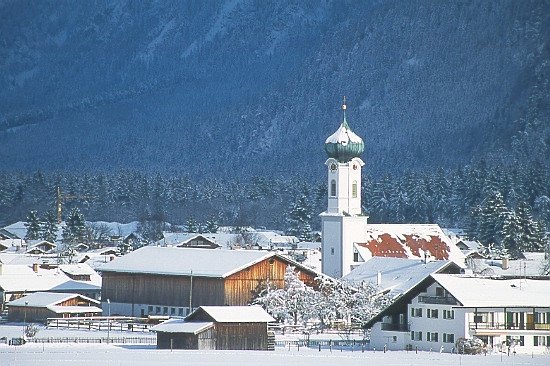The small village of Farchant, located just a couple of miles north of Garmisch-P. at the foot of the mountain shown above.