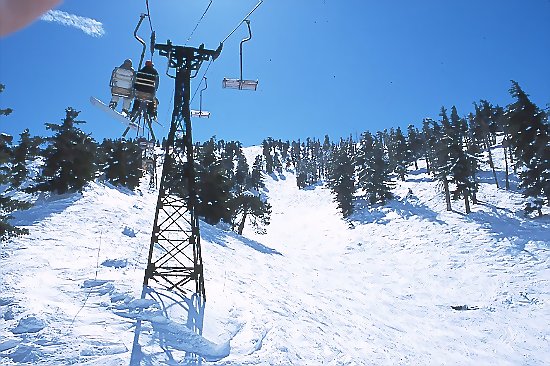 As mentioned in some previous Updaters, Southern California offers some excellent skiing, just few miles from Los Angeles. In March, I went once to Snow Summit and twice to Mount Baldy. The latter is really a gem with lots of steep runs and plenty of tree skiing. Below is the view from one of Mount Baldy's chair lifts:
