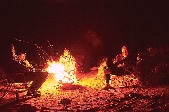 My second visit in February to the desert was together with some colleagues and friends. We camped at a remote place and were telling stories until late at night, assembled around a campfire (I am sitting at the very left).