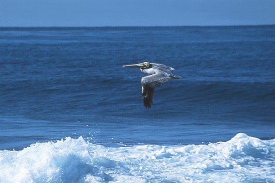 Not only humans surf the sea, also Pelicans do. They often fly less than 1-2 feet above the waves. It is a most majestic sight watching them gliding effortless and looking for fish.