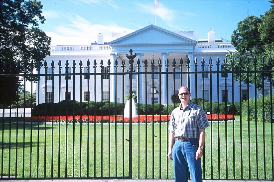 Although the museums in Washington D.C. are really great, more famous are the buildings of the American government, like the Capitol above. The next photograph shows me in front of another well-known building, the White House: