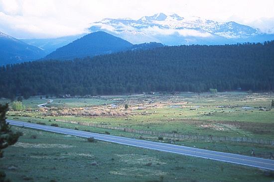 After my meeting, I went to Rocky Mountains National Park. The park is about a one hour drive away from Boulder. It contains almost 1100 square kilometers of the most spectacular mountain scenery in America. Several peaks are over 4000 meters high, with Longs Peak being the highest, raising up to an altitude of 4300 meters above sea level. Below is Moraine Park with Longs Peak in the background, partially shrouded in clouds. Moraine Park was shaped during the last ice age by the Thompson Glacier. The now forested ridge in the center of the photograph is the remnant of the glacier's lateral moraine.
