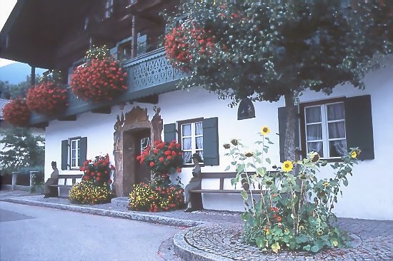 After my visit to Amsterdam in August, I traveled for four days to Garmisch-Partenkirchen, my home town. Although it was raining during almost all the time, I had a good time. I was visiting and inviting friends, drove to Munich, went to a new arts museum (in fact, it turned out to be a kitsch museum), and even made it to my beloved lake, the Walchensee. Of course, I was also exploring the close vicinity of my village with its beautiful Bavarian houses, decorated with flowers, wall paintings, and carved benches next to the entrance: